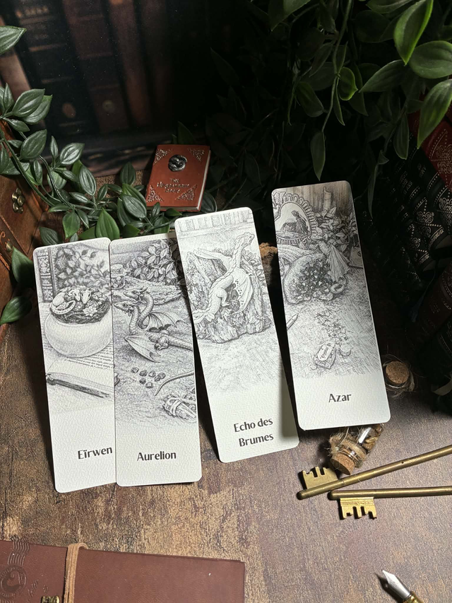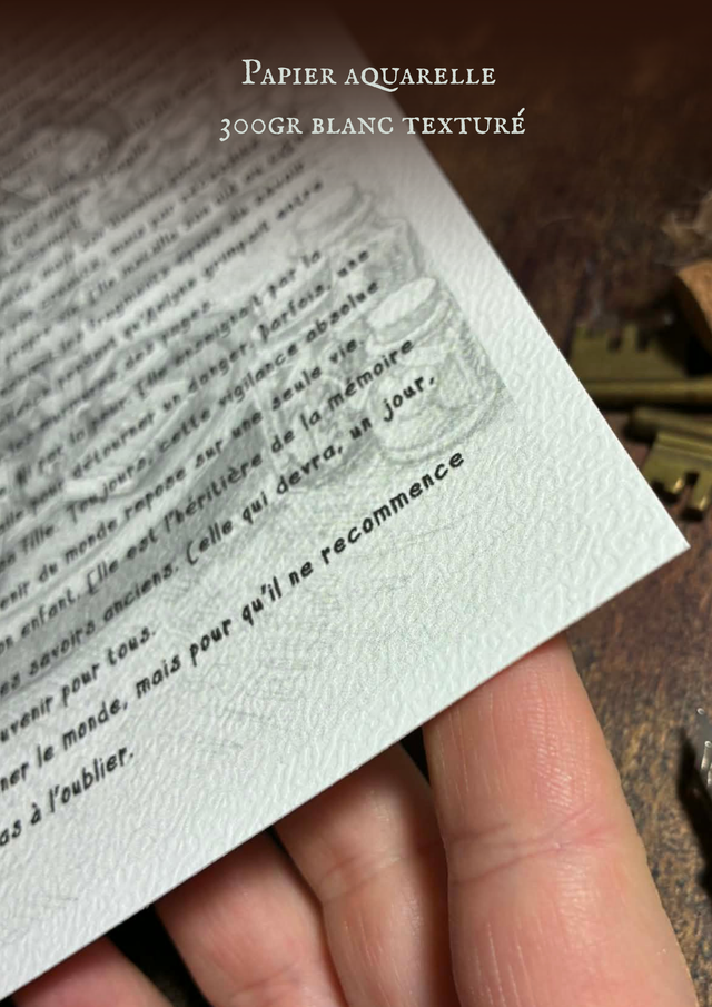 Ces feuillets évoquent des pages arrachées à un grimoire oublié, des éclats de légende à encadrer, offrir ou garder près de soi.