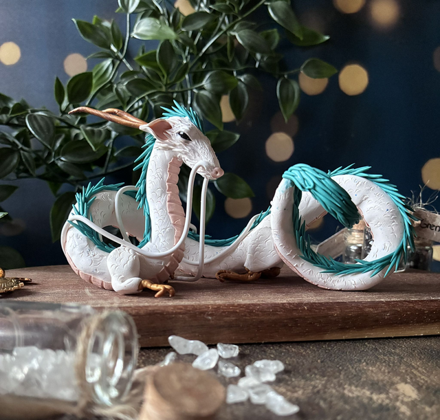 Pièce unique modelée à la main en hommage au dragon du film culte de Miyazaki. Chaque écaille, chaque mèche, chaque détail a été sculpté avec patience pour lui donner vie.